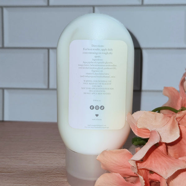 Hand lotion ingredients: Aqua,jojoba oil,Glycerin,mango butter,Behentrimonium Methosulfate, Cetyl Alcohol, Butylene Glycol,Panthenol-Dl,fragrance oil,diazolidinyl urea (and) iodopropynyl butylcarbamate,vitamin E,fragrance oil,mica