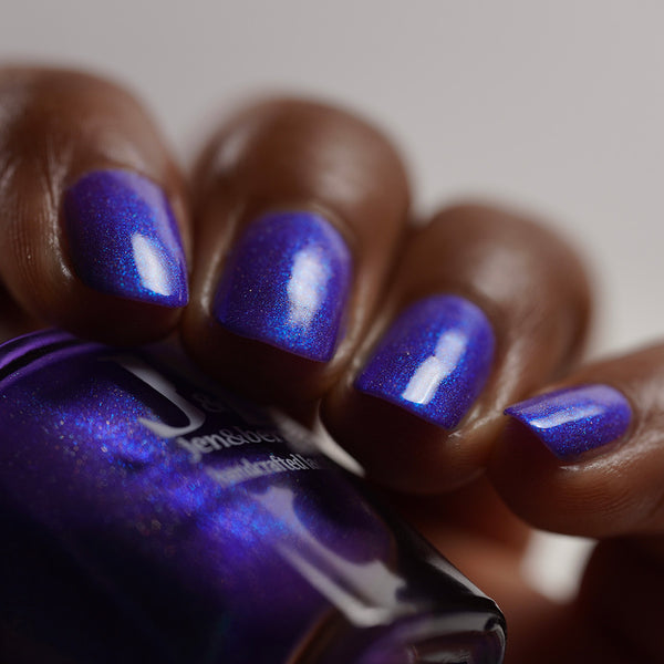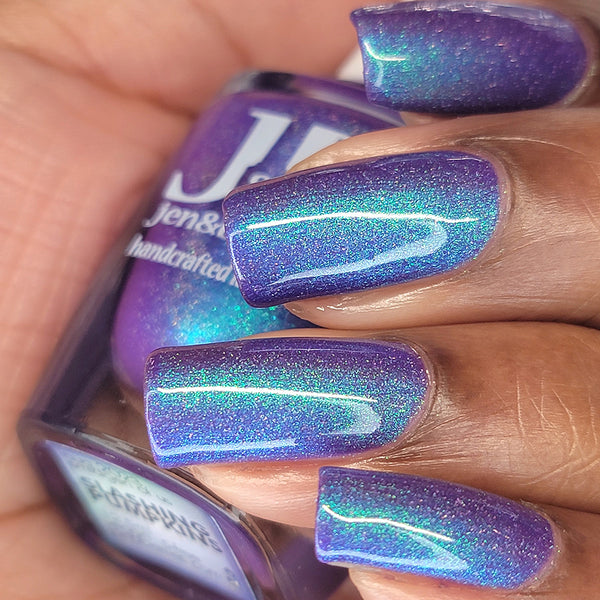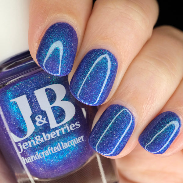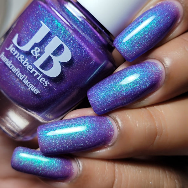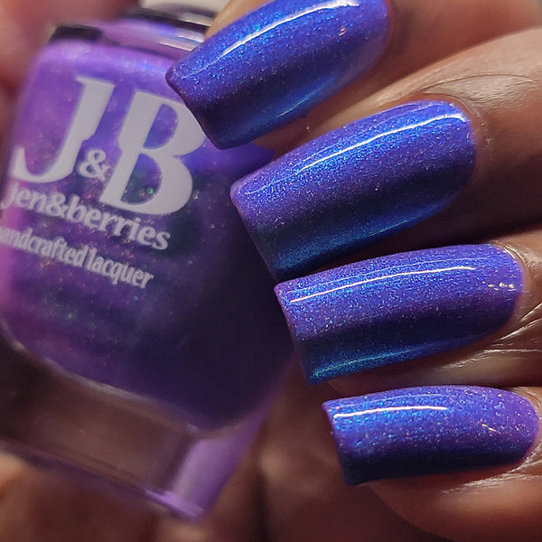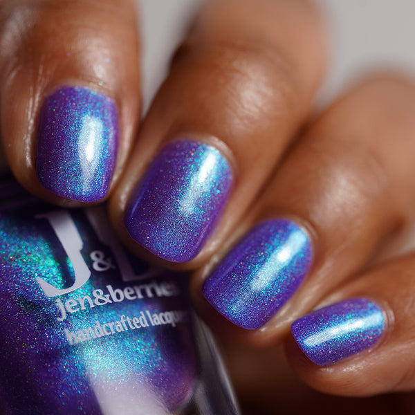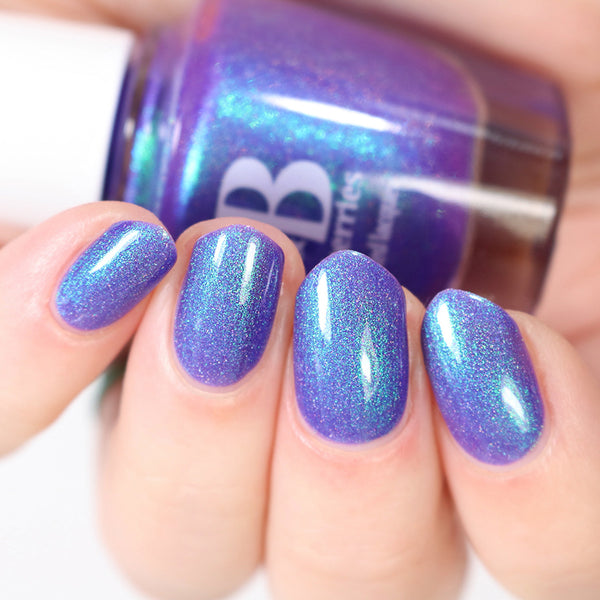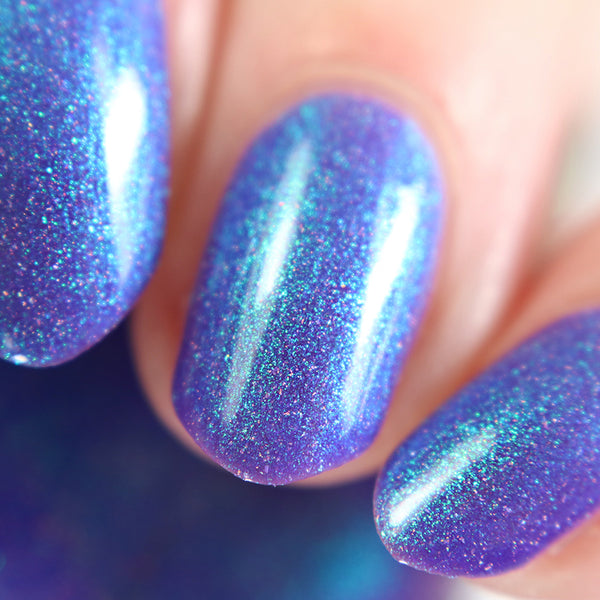 Description - Neon blurple base with green/teal/blue shifting shimmer and holographic microflakies.