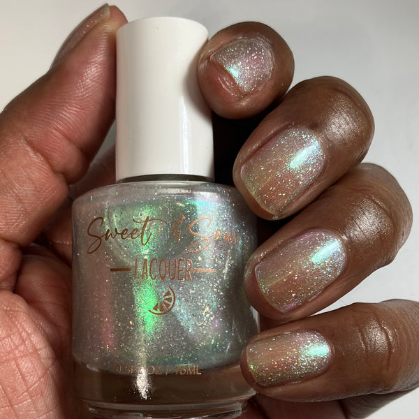 Sweet and Sour Lacquer nail polishes are cruelty-free and 5-free – they’re never tested on animals and do not contain the following harmful chemicals: Toluene*, Formaldehyde, Dibutyl Phthalate (DBP), Formaldehyde Resin, and Camphor Base Ingredients: Nitrocellulose, Ethyl Acetate, Butyl Acetate, Propyl Acetate, Isopropyl Alcohol, N-Butyl Alcohol, Triphenyl Phosphate. May contain: mica, powdered and liquid colorants, glitter, Spectraflair, flakies.